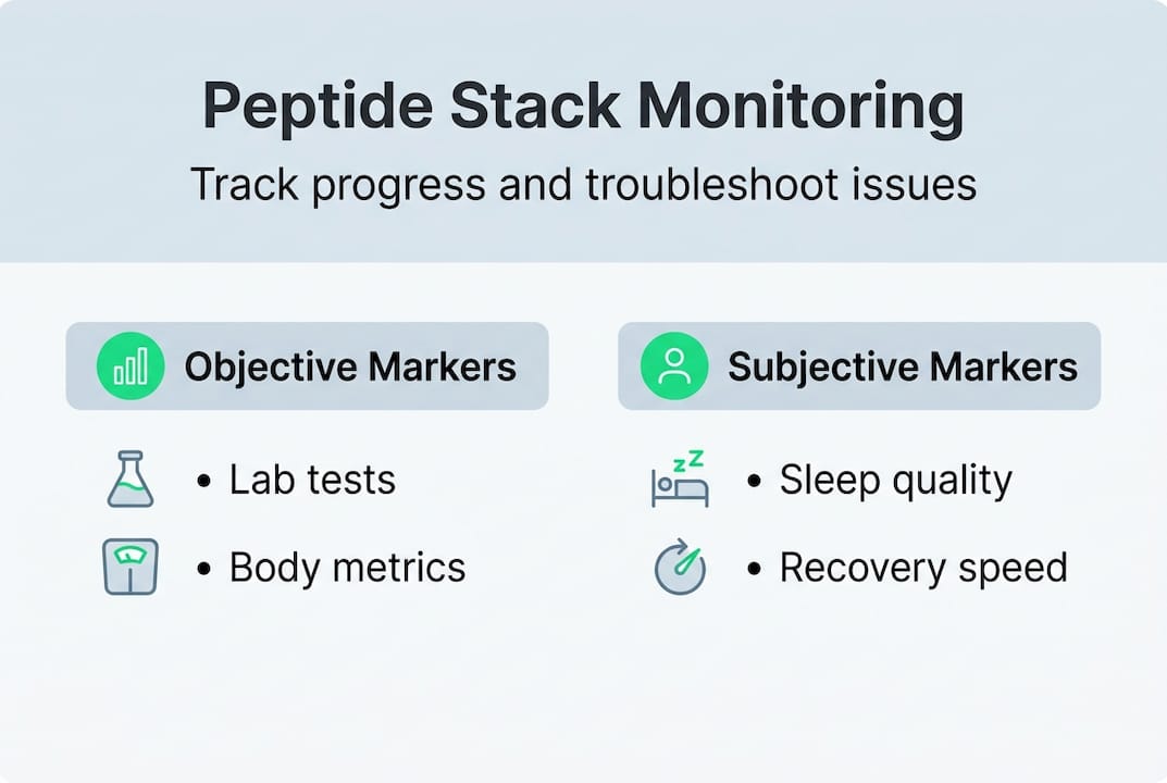 Monitor labs every 8 weeks, and report any additive side effects like glucose elevations or water retention to your physician promptly. These are the most common early warning signs that your stack needs adjustment.